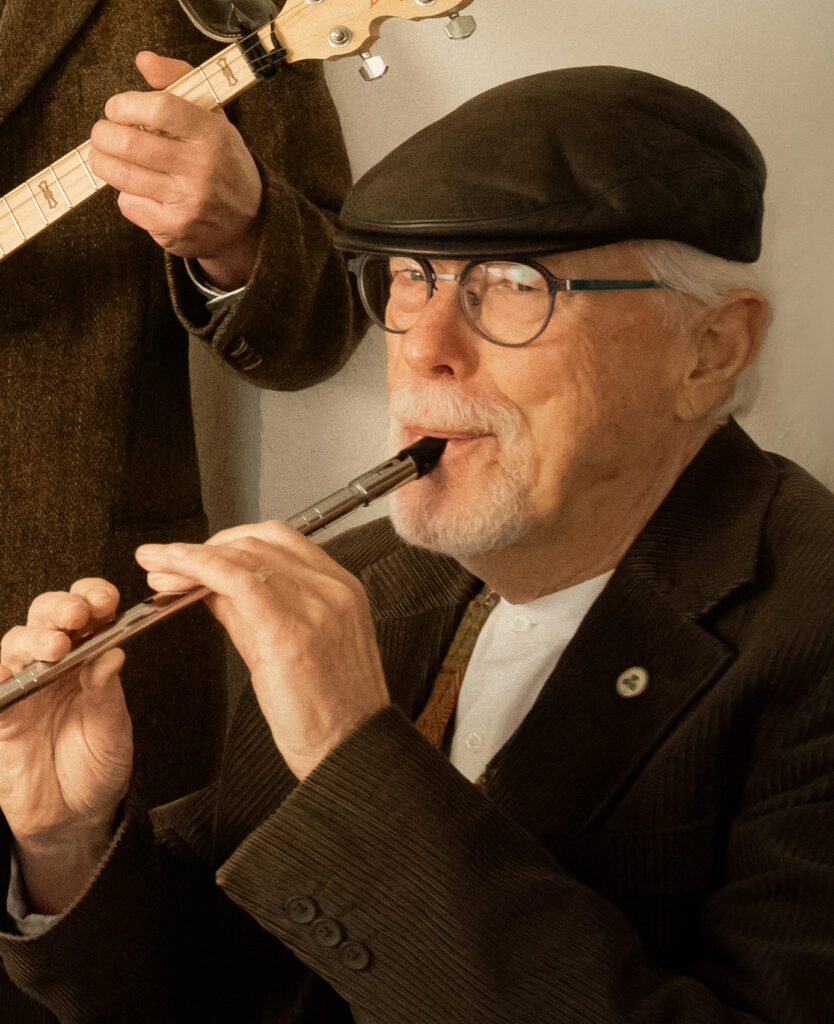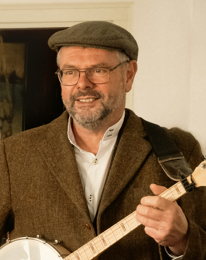 Jan is onze Nestor, levensgenieter en geweldige tin- en lowwhistler. Van de oorsprong van Jan’s muzikale aspiraties is ons bekend dat hij vroeger verdienstelijk dwarsfluit speelde binnen de Zeeuwse muziekschool en later ook in een orkest voor experimentele muziek. De belangstelling voor de traditionele Ierse en Keltische muziek begon toen Jan een whistle kocht tijdens een van zijn reizen naar Engeland. Jan had vroeger een flinke afkeer van gezongen nummers. Inmiddels accepteert hij -voor de vorm onder protest- de songs in onze programma’s. Jan behoedt ons als we teveel de populistische kant dreigen op te gaan. Back-to-basic Jigs, Reels en Polka’s brengen ons dan weer met de beide voeten op de Keltische vloer. Hij kan ook vreselijk goed moppen tappen en tijdens onze buitenlandse trips aardappels schillen en English Breakfast klaarmaken. Al met al is Jan een belangrijk lid van de band die met zijn fluitspel de basis vormt van onze muziek.