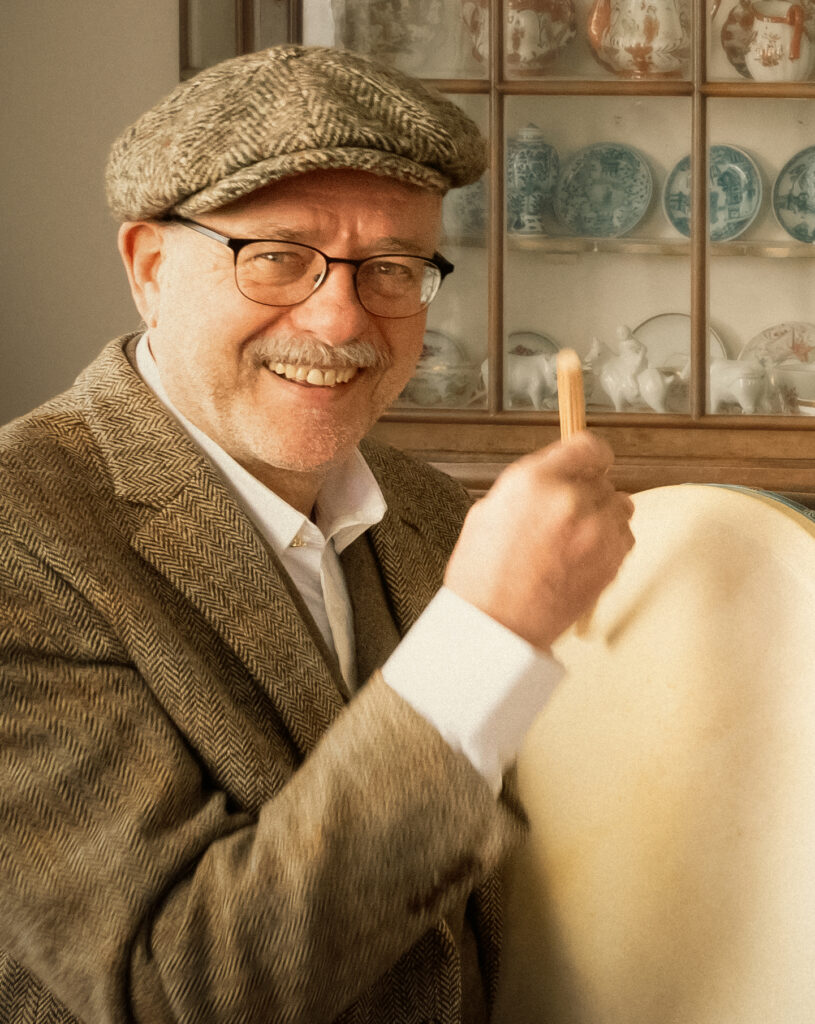 John begon met het bespelen van de Bohdrán vanuit een gevoel dat muziek meer moet zijn dan alleen maar er naar luisteren. De Bohdrán is de bijzondere, typisch Keltische, lijsttrommel met niet alleen ritme maar ook toonvorming. John had altijd al veel belangstelling voor allerlei soorten muziek maar de Keltische muziek in het bijzonder. Lessen en workshops (o.a. bij Rob Bitter) brachten hem de nodige vaardigheden bij. Door zijn jarenlange ervaring bespeelt hij het instrument met een onwaarschijnlijke behendigheid. Ons goedlachse bandlid fungeert als de noodrem en het ritmische orakel van de band. Het is niet snel verkeerd, maar als John zijn kritische ogen opslaat kan je er van uit gaan dat er iets moet worden aangepast aan maat, tempo of ritme